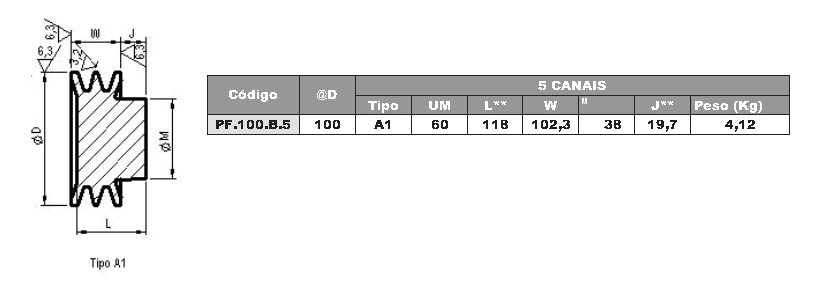 Polia de Ferro Fundido 100mm com 5 Canais B - Mademil