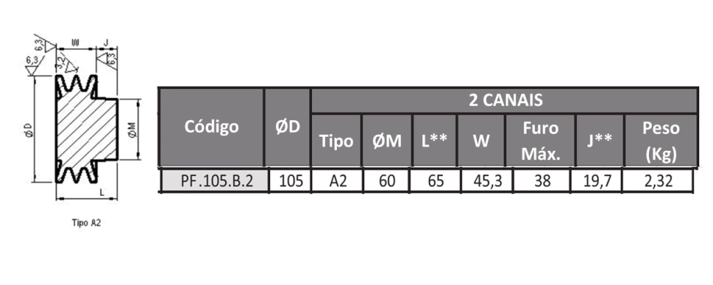 Polia de Ferro Fundido 105mm com 2 Canais B - Mademil