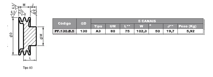 Polia de Ferro Fundido 130mm com 5 Canais B - Mademil