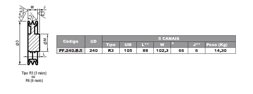 Polia de Ferro Fundido 240mm com 5 Canais B - Mademil