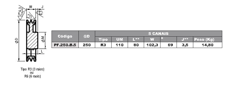 Polia de Ferro Fundido 250mm com 5 Canais B - Mademil