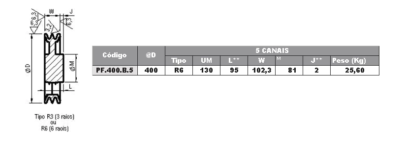 Polia de Ferro Fundido 400mm com 5 Canais B - Mademil